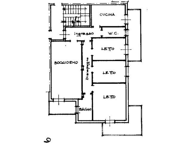 In zona Ospedaletto di Forlì al piano primo senza ascensore si vende appartamento di grandi dimensioni affacciato sul verde e composto da ingresso , soggiorno molto spazioso con balcone , cucina abitabile con secondo balcone , primo bagno di servizio , disimpegno notte , camera matrimoniale con terzo balcone , due spaziose camere singole e bagno grande .