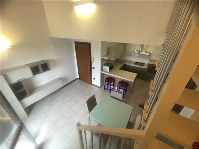 In palazzina di poche unità si affitta appartamento di recente costruzione al primo piano senza ascensore. L'appartamento è composto da soggiorno con angolo cottura e balcone , camera matrimonile con secondo balcone e bagno con doccia . Al piano mansarda troviamo altri due vani fenestrati , un secondo bagno e ripostiglio . Completa la soluzione il grande garage. Utenze autonome e aria condizionata.